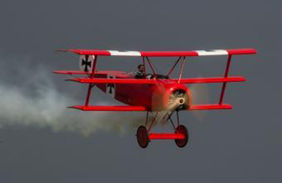 Bis dahin gab es viele atemberaubende Vorführungen von den kleinen Großen. Nahezu den Abschluss läutete Gernot Bruckmann mit seinem Fokker DR.I Modell ein. Vor teilweise dunkler Wolkenkulisse und sogar einem Regenbogen zeigte er meisterhaft die Wendigkeit dieses Jagdflugzeugs aus der Ära des “Roten Barons”.