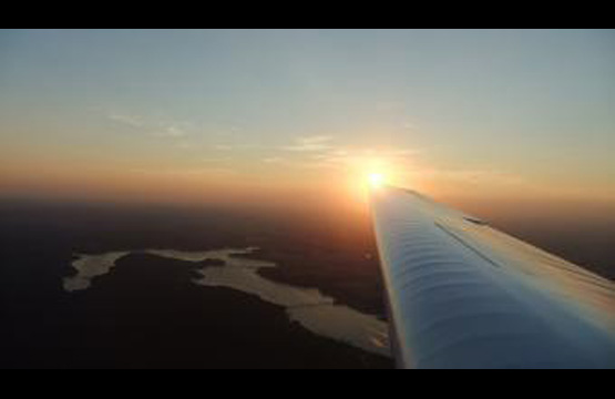 Aber zunächst war gar nichts zu sehen. Trotz des wunderschönen Wetters war es etwas diesig und so hatte sich über dem Horizont eine undurchdringliche Schicht gebildet. Bernhard musste also leider unverrichter Dinge wieder landen. Allerdings konnten die beiden einen wunderschönen Sonnenutergang betrachten.