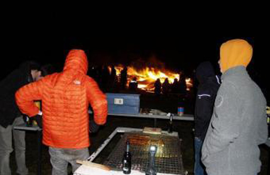 Diesmal gab es auch Grillwürstchen. Und so konnten sich alle nicht nur mit Flüssigem laben. Die Wärme des Feuers konnten alle gut gebrauchen, war der Wind doch schon recht kalt.